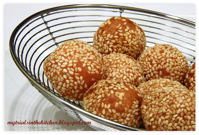 6. Dip the ball in water and coat it with sesame seeds. Repeat the same until you have